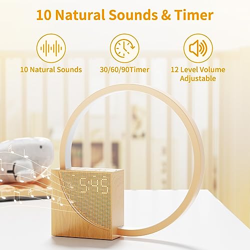 10 SUONI NON OPERATI PER ADdormentarsi: fare clic sul pulsante "Suoni naturali" per entrare in modalità. La nostra luce notturna a LED contiene 10 suoni naturali: uccello, mare, acqua corrente, falò, cicala, temporale, rumore della ventola, pioggia, carillon, ticchettio. In modalità suono naturale, i suoni naturali vengono disattivati automaticamente con l'aiuto di un timer da 30, 60 o 90 minuti quando il timer è scaduto per favorire il sonno