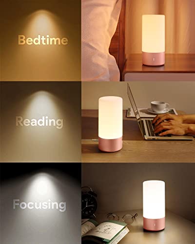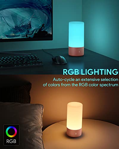 Lampada da comodino a LED, lampada da tavolo con sensore tattile, luce notturna tattile dimmerabile bianca calda, lampada da notte cambia colore 256 RGB, luci da lettura per camera da letto (Rosa)