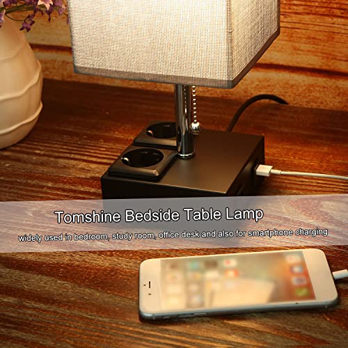 Lampada da Comodino, Lampada da Tavolo TOMSHOO Lampada da Tavolo Moderna a LED da Comodino con due Porte di Ricarica USB 2.1A e due Prese di Uscita per Ufficio Camera da Letto