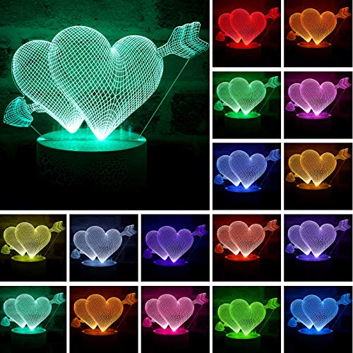 Lampada 3D Love Cupid, Luce Romantica dell'Illusione dell'Amore 16 Colori Luce Notturna LED del Cuore per Sonno per Valentines Moglie, Tocco Remoto
