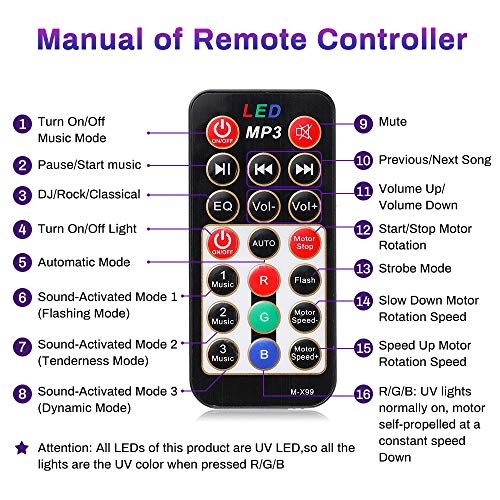 【Viene fornito con telecomando multifunzione】 Puoi usarlo per cambiare la modalità di proiezione della luce e riprodurre i brani in qualsiasi momento, puoi anche controllare il volume e la velocità della velocità di rotazione della luce.