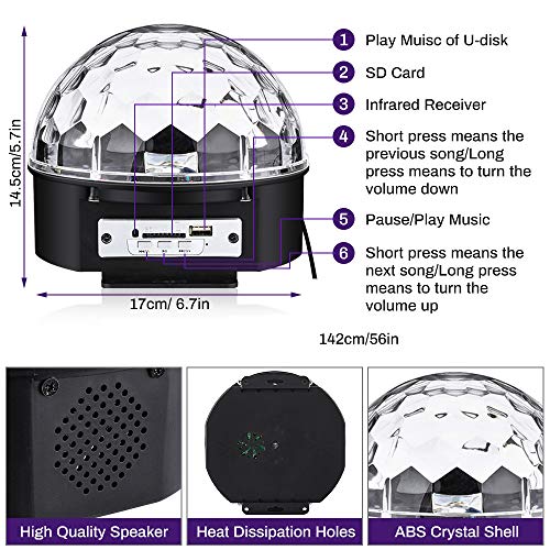 【 Copertura della proiezione è più ampia】 81 obiettivi, ogni obiettivo può lanciare 3-6 raggi, per un totale di 240-480 raggi di luce. Sfera magica di cristallo 6 LED ad alta luminosità. Adottare LED UV di alta qualità, grandi chip e alta luminosità con lunga durata, durata del LED fino a 20.000 ore.
