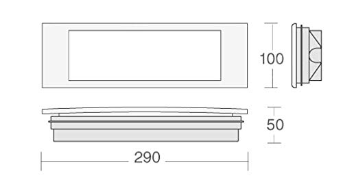 Compresa anche la scatola di incasso, sul retro della lampada sono presenti fori per poterla fissare a muro. Dimensioni: 292 x 79x 102 mm con scatola incasso: 292 x 93,7 x 102 mm.
