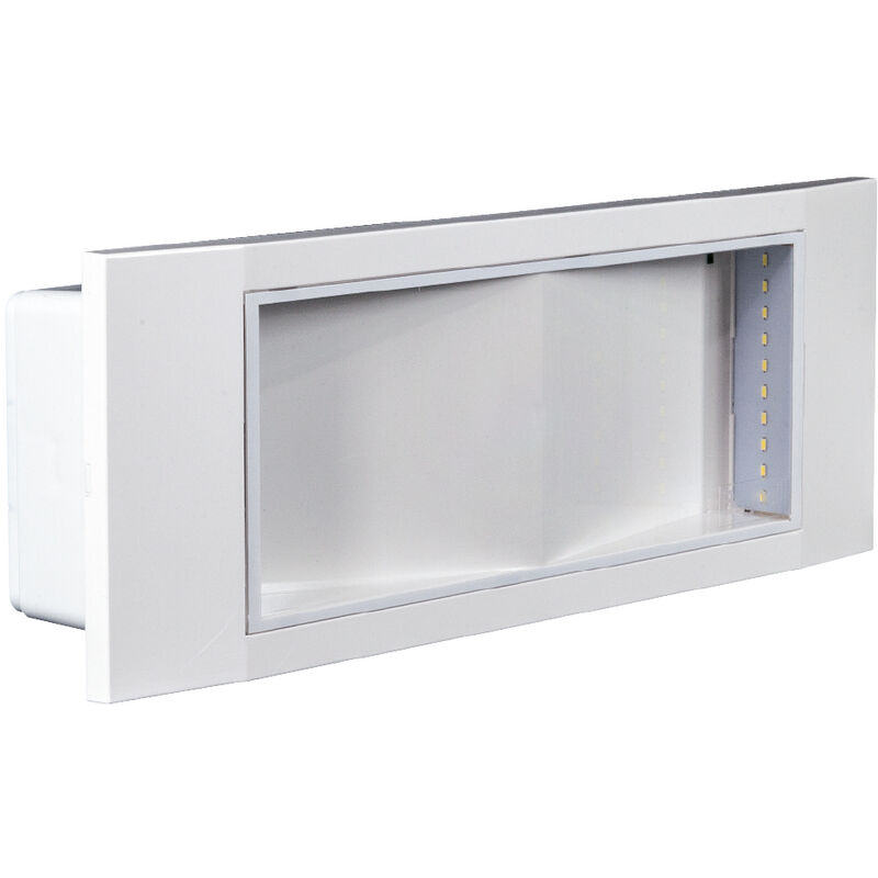 Nuovissimo apparecchio autonomo per illuminazione di emergenza provvisto di sorgente led di lunga durata, il grado di impermeabilità è IP40, la resistenza agli urti è IK05, il corpo è in materiale termoplastico (EN 60598-1 cl 13, UL94-V2), il colore è bianco (RAL9003). Questo prodotto viene fornito con istruzioni in Inglese, il colore è bianco, le misure sono circa 29 x 10 x 6 cm, il peso è di circa 950 gr, la potenza è di 11W, è provvisto di fori sul fondo per fissaggio diretto su scatole standard 3 moduli (503) e di pre-rotture per il fissaggio ad altre scatole standardizzate, l'ingresso dei cavi è predisposto sui lati del prodotto, fissato al corpo mezzo ganci a scatto attuabili con utensile, il diffusore in materiale termoplastico stampato ad iniezione ad elevata resistenza e trasparenza, le superfici lisce per facilitarne la pulizia, mentre l'alimentatore è integrata, di tipo elettronico composto di sezione caricabatteria, generatore di corrente costante e unità di controllo