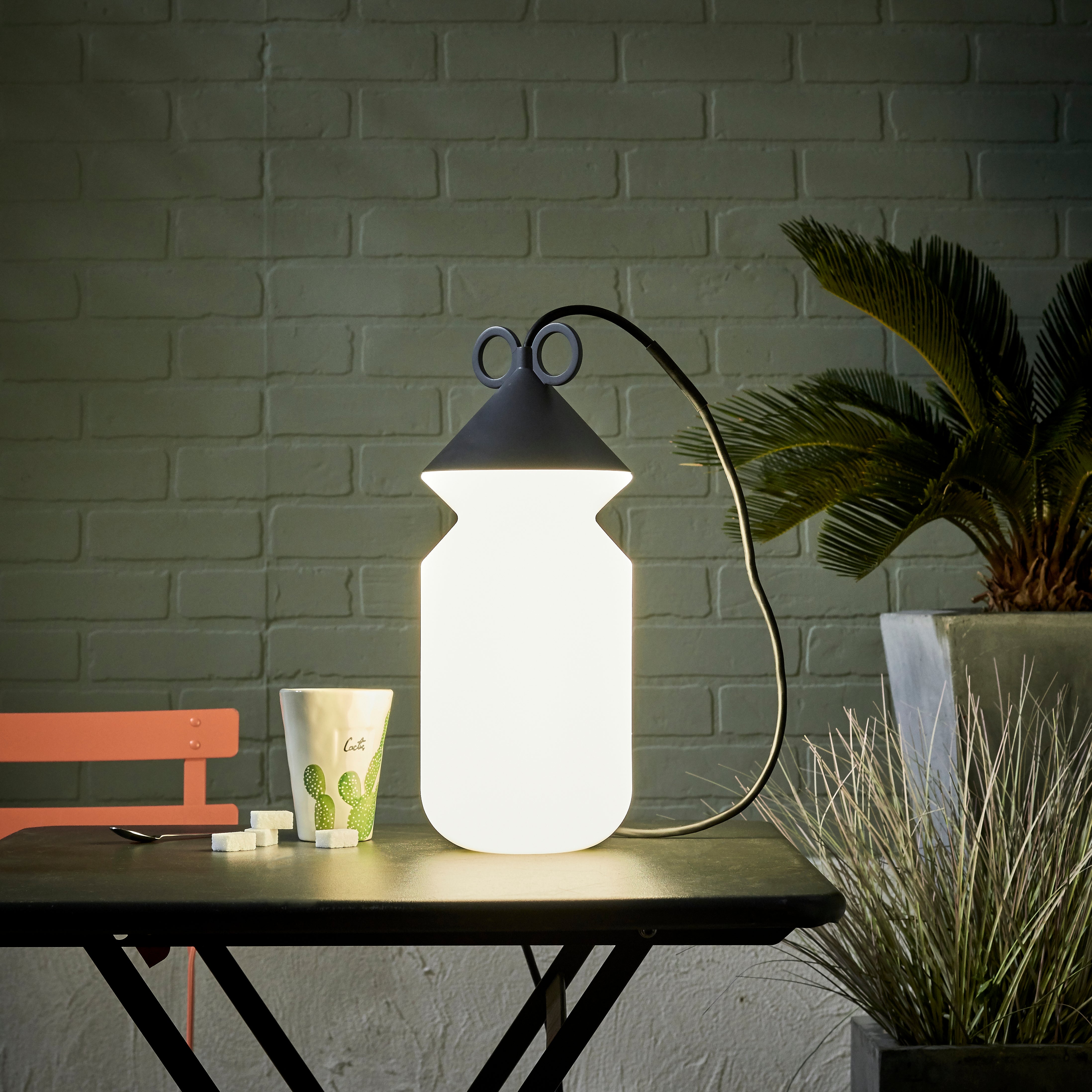 Lampada Bodo IP44 4in1 E27 max 20W grigio. 3 modi in installarlo, applique, lampada da terra, a uncino. facile sostituzione della lampadina. Ideale per illuminare una zona esterna senza installazione