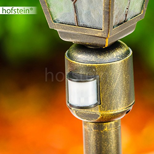 Lampada da esterno Antibes, rilevatore di movimento, candelabro, stile antico, fusione di alluminio in marrone/oro, vetri, lampada da sentiero 110cm, lampada da giardino, E27, IP44, senza lampadina