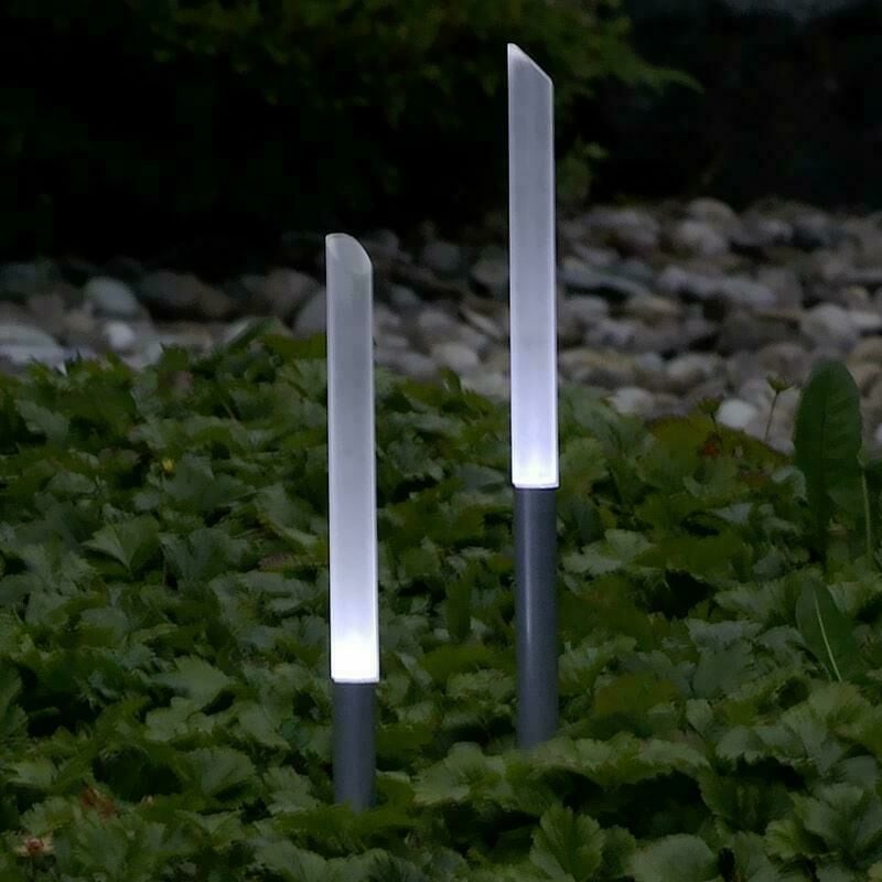 Descrizione Questa lampada e' perfetta per illuminare ogni giardino, sia nuovo che esistente poiche' per l'installazione non e' richiesto alcun tipo di scavo nel prato. Per cui sara' sempre facile espandere o modificare l'impianto. Grazie al sistema plug and play l'installazione puo' essere effettuata da chiunque in quanto questa nuova tecnologia a 12 volt e' considerata la piu' sicura dalle direttive europee. L'intero sistema, dal trasformatore (venduto separatamente) alla lampada, e' dotato di connettori a tenuta stagna e pertanto per l'installazione non deve essere utilizzato alcun tipo di attrezzo. Solo per il fissaggio delle lampade e' necessario l'utilizzo di un cacciavite. Caratteristiche Tria 3025052 IP44 Materiale: alluminio e plastica Colore: argento Dimensione: 380/320 x 20 mm Cavo: 2 metri con connettore Sorgente: LED bianco 12V 1W Dotazione di posa: punta per ancoraggio a terra Questo prodotto funziona esclusivamente con voltaggio da 12V l'apposito attacco plug and play.