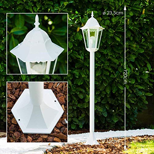 Lampada da esterno Hongkong, lampada da terra in stile antico, in fusione di alluminio bianco con vetri, lampada da sentiero 120 cm, lampada da giardino retrò/vintage, E27, IP44, senza lampadina/e