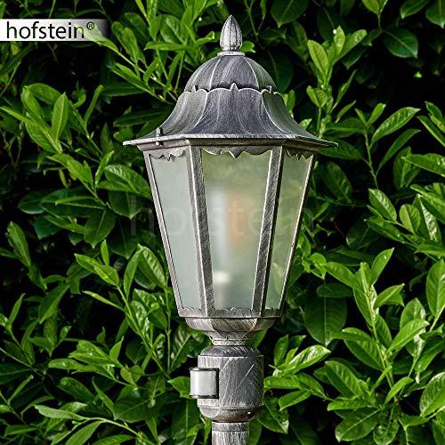Lampada per esterno Lignac Frost con sensore di movimento, in alluminio pressofuso nero/argento con vetri trasparente,1 luce, lampadina con attacco E27 max. 60 Watt. IP44. Altezza 118 cm.