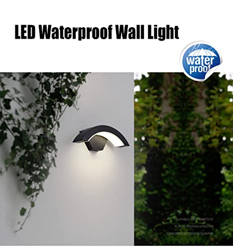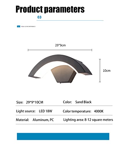 Lampada da esterno moderna a LED, 18W, design curvo, lampada da parete per esterni, custodia in alluminio,Nero opaco, impermeabile IP65, adatta per interni ed esterni, Luce naturale (18W-4000K)