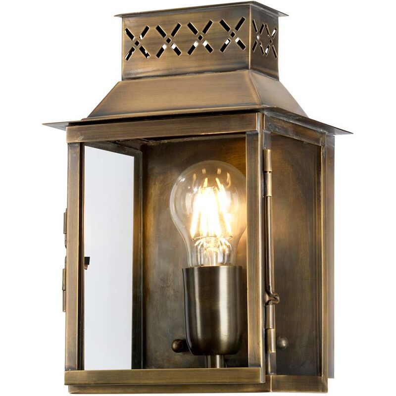 Descrizione Prese da originali trovati nella Gran Bretagna pre-georgiana, queste lanterne d'epoca in ottone massiccio aggiungono stile e classe sia alle case di città che di campagna. Sono realizzate a mano e hanno un aspetto invecchiato finitura in ottone, verniciata per una maggiore durata. Tutti i modelli sono certificati IP44. Alcuni modelli sono disponibili anche in nichel lucido o verderame. Dettagli • Tipologia di prodotto: Lampada da parete • Altezza in cm: 27 • Larghezza in cm: 18 • Lunghezza in cm: 13 • Materiale: Ottone massiccio, vetro • Finitura: Anticata ottone • Numero di prese: 1 • Potenza massima: 100W • Presa: E27 • Lampadina inclusa: no • Tensione: 220-240V 50hz • Classe di protezione: IP44 • Classe di protezione: Classe I • Altezza dello schienale in cm: 17 • Larghezza/Ø dello schienale in cm: 15 • Sbalzo dello schienale in cm: 2,5