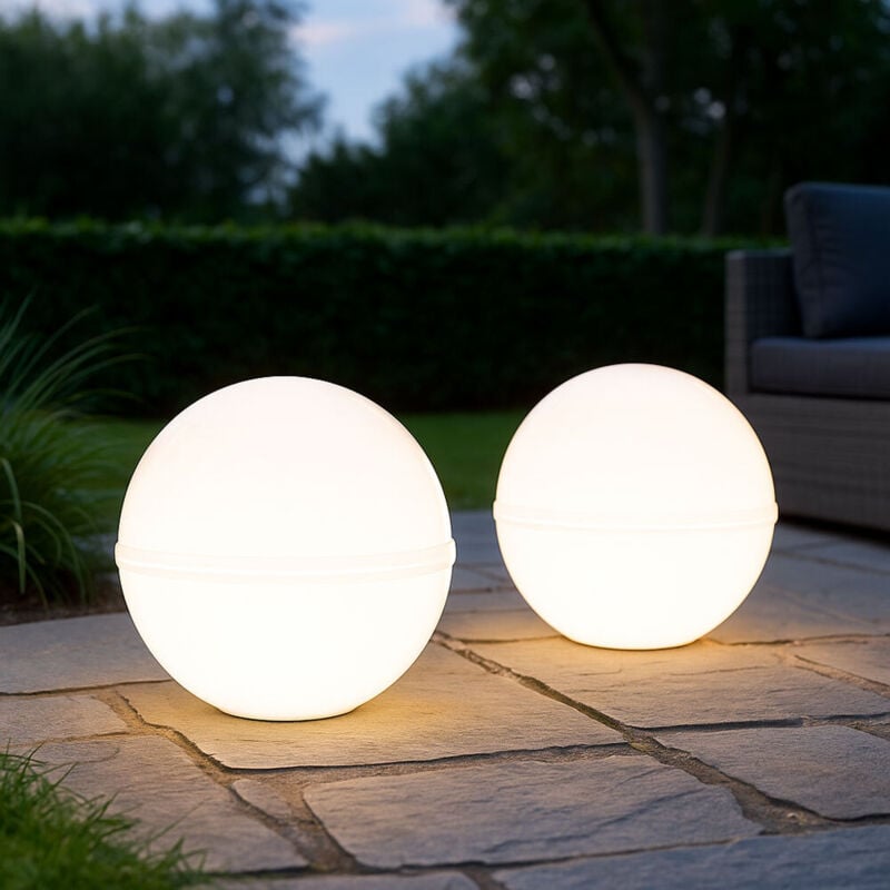 Descrizione Utilizza il set di 2 luci a sfera per creare accenti luminosi speciali nel tuo giardino, balcone o terrazza. Ogni lampada viene fornita con un bicchiere di plastica bianca, composto da due metà con un anello trasparente al centro. I bicchieri hanno un diametro di 20 cm e forniscono una luce bella e priva di abbagliamento. Hai la possibilità di dotare il set di illuminazione con una lampadina E27 fino a un massimo di 40 Watt. Combina le luci a sfera con una fonte di luce adatta ai tuoi gusti. Puoi anche utilizzare una lampadina colorata per aggiungere bellissimi accenti di colore in casa e in giardino. La sua classe di protezione IP44 lo rende perfetto per l'uso esterno. La fornitura comprende un cavo da 5 metri e un picchetto per ogni lampada. Nella consegna sono incluse due luci a spina! Lampada dettagli • Tipo di lampada: lampada a sfera • Materiale: plastica • Colore: bianco, nero • Grado di protezione: IP44 • Lunghezza cavo in cm: 500 • Diametro x altezza in cm: 20 x