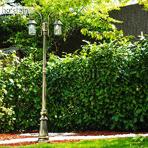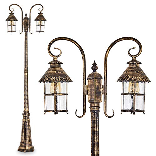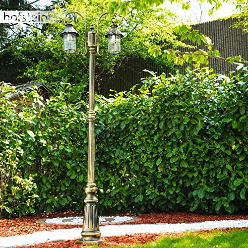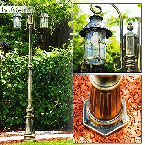 Lampada da esterno Tolep, candelabro, stile antico, fusione di alluminio in marrone/oro, paralumi in vetro, lampada da sentiero a 2 bracci, 220cm, lampada da giardino retrò, E27, IP44, senza lampadine