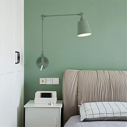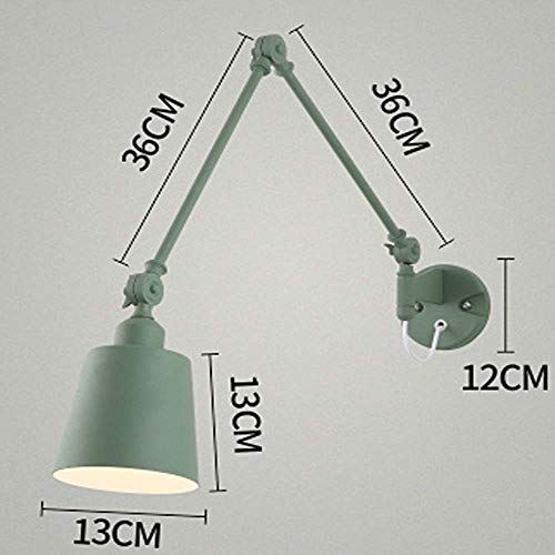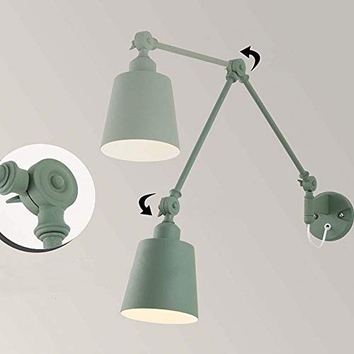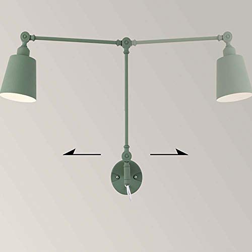 VOMI Lampada Muro Ferro Battuto Moderno LED Regolabile Lungo Braccio Estensibile Camera Letto Parete da Lampada E27 Frosted Verde Pieghevole Telescopico Lettura Applique da Parete