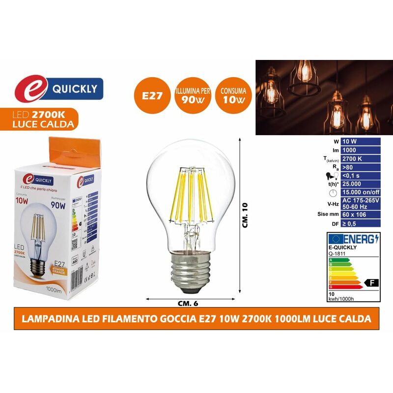 Lampada led filamento bulbo e27 10w 2700k 1000lm l.calda