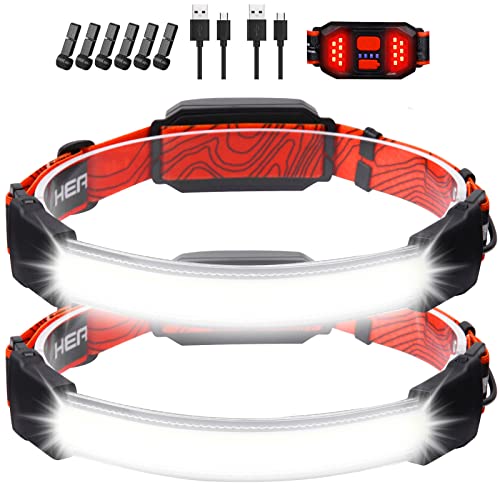 Lampada Frontale (2 Pezzi),Torcia Frontale LED Ricaricabile,Torcia da Testa Impermeabile con Fanale Posteriore Rosso,Fascio Largo 260° Luce Frontale,3 Modalità di Illuminazione,Per Campeggio,Corsa