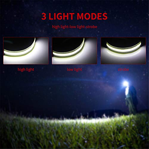 【Tre modalità di alimentazione】 La lampada frontale LED COB ha tre modalità di alimentazione ed è facile da usare con il suo unico LED alto / basso / strobo Grande lampada frontale a mani libere, fare clic una volta / Luminosità, Doppio clic Premere / Bassa luminosità, tre volte / Lampeggiante, ben fatto e altamente raccomandato! (Batterie non incluse)