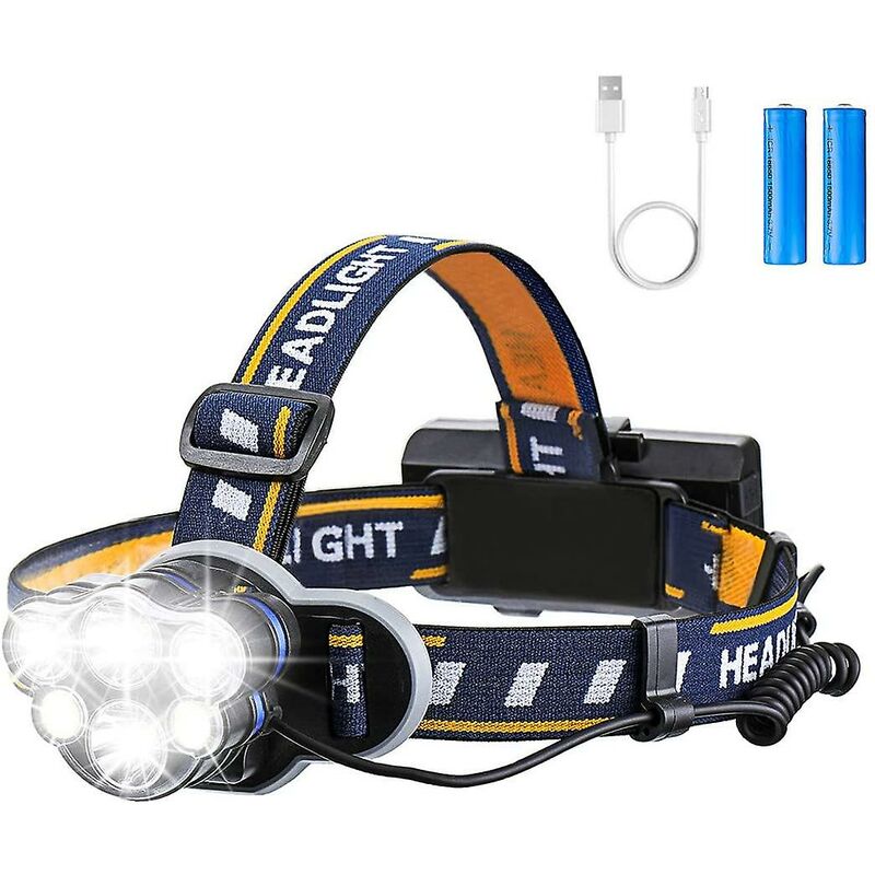 LED ultra potente: il proiettore fornisce una potenza luminosa massima di 1200 lumen e un fascio di luce grandangolare di 500 metri che consente una visione panoramica al buio.^ 90 modalità di rotazione e 8 modalità di illuminazione: La testa della lampada può essere ruotata di 90 e questo proiettore ha 8 modalità di illuminazione. Quindi puoi regolare la luce e la direzione in base alle tue esigenze.^ USB ricaricabile e autonomia: questa lampada frontale è dotata di due batterie rimovibili, puoi caricarla con il cavo USB (incluso). Potrebbe essere un uso a lungo termine. Con una sola batteria, questo proiettore può funzionare anche.^ Impermeabilità IPX4 e vari usi: il faro a LED è impermeabile IPX4 e può essere utilizzato sotto la pioggia. È molto utile per attività all'aperto come salvataggio, escursionismo, caccia, campeggio e pesca. Il cinturino di sicurezza può essere regolato per una vestibilità e un comfort ottimali.