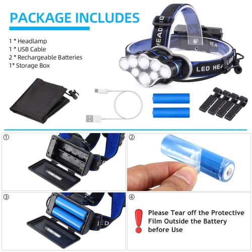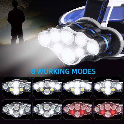 Lampada frontale da Testa Ricaricabile,2400mAh Torcia LED Frontale,Faro USB Super Luminosa con 8 modalità,Torcia da Testa per Campeggio/Escursionismo,Mountain Bike,Pesca,Cantina,Corsa