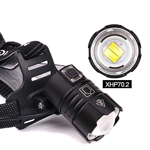 【Torcia Frontale LED Super Luminosa】 questa torcia ricaricabile adotta la più recente lampadina XHP70, che è il LED più luminoso di sempre, la luminosità può raggiungere fino a 20000 lumen, il faro a LED a mani libere illumina il tuo ambiente, lasciandoti libero di lavorare, leggere ed esplorare quando e dove vuoi.