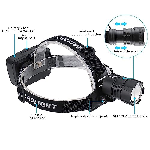 Lampada Frontale LED XHP70, 20000 Lumen Super Luminosa Lampade da Testa 3 Modalità IPX4 Impermeabile Torcia Lampada USB Ricaricabile per Campeggio, Equitazione, Corsa, Pesca, Riparazione Auto