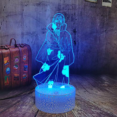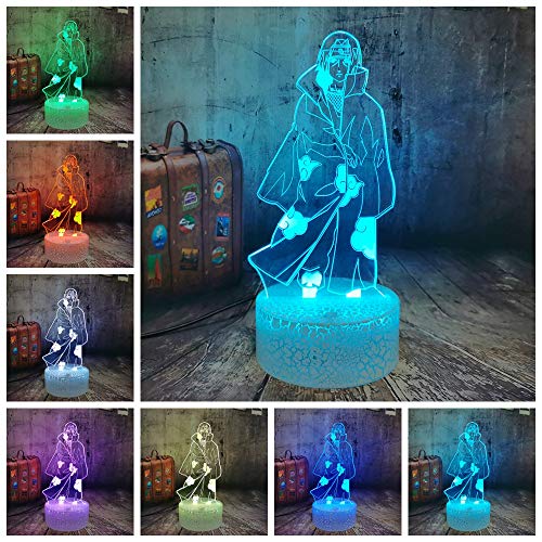 Lampada 3D Illusion LED Night Light Uchiha Itachi Figura USB Touch Sensor per la decorazione della camera dei bambini Giocattoli fantastici per i fan Lampada da notte per il sonno dei bambini