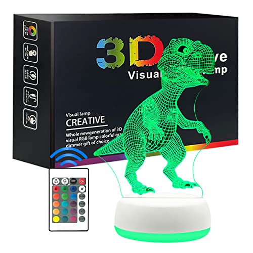 Lampada a illusione 3D con dinosauro, lampada notturna per bambini, lampada a forma di dinosauro, con telecomando in 16 colori che cambiano e 7 colori smart touch, regalo per ragazzi e ragazze