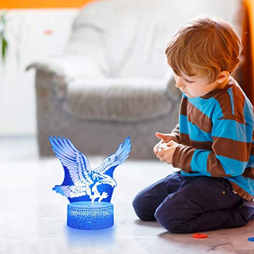 Lampada 3D Illusione Luce Notte Bambini Ottica Toccare Il Controllo 16 Colori Selezionabil aquila Lampade Notturna da Comodino Touch Regali Natale(aquila (telecomando))