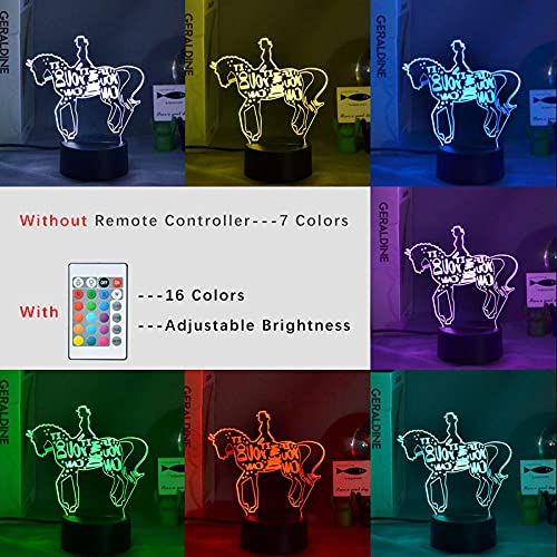 Lampada illusione 3D Luce notturna a LED Bella donna che cavalca un cavallo Cambia colore per la camera dei bambini Decorazione della lampada Regali Camera dei bambini Ragazzo ragazza regalo