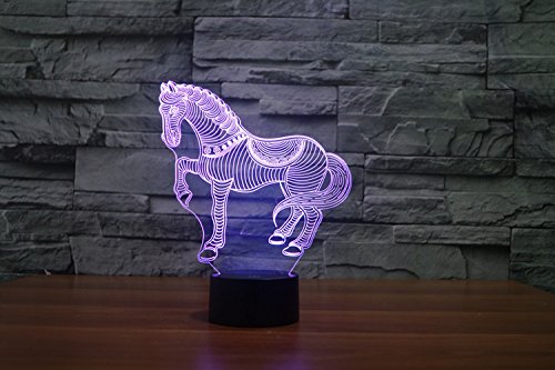 Lampada 3D con illusione ottica, 7 colori, interruttore tattile, per la scrivania. Luce a LED notturna con cavo USB, per bambini, regalo di natale o per la decorazione della casa. Horse