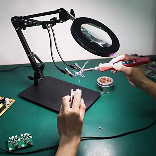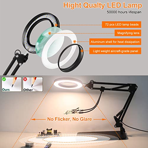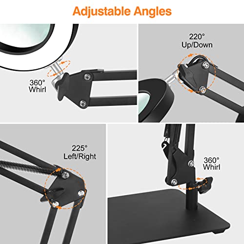 Design della lampada con lente d'ingrandimento da tavolo 2-IN-1: questa lampada con lente d'ingrandimento è dotata di una base e un morsetto in metallo, che può essere saldamente fissato a una scrivania, testata del letto, bordo, salvaspazio o è possibile utilizzare un desktop pesante base, il design flessibile può puntare il vetro e la luce nella posizione di cui hai bisogno.