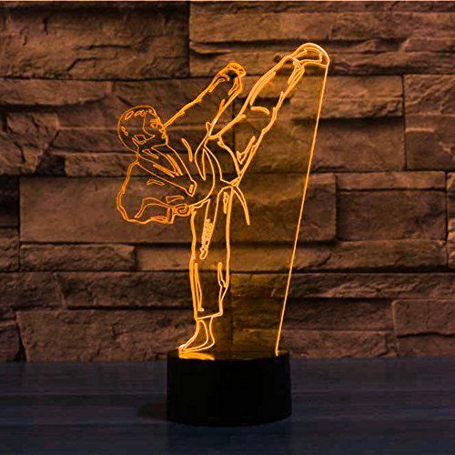 Lampada 3D da karate, illusione ottica, luce notturna, 7 colori cangianti, interruttore touch, lampada da tavolo, decorazione da scrivania, perfetto regalo di Natale, con cavo piatto in acrilico