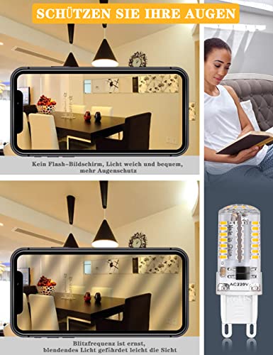 【Luce confortevole】: lampadina LED G9 senza sfarfallio, 3000K bianco caldo crea un'atmosfera calda e confortevole, perfetta per l'illuminazione domestica, la luce è piacevole e molto naturale, protegge i tuoi occhi
