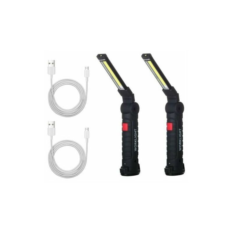 Faro da lavoro - Il corpo leggero è realizzato in gomma dura, resistente al sudore e antiscivolo, pieghevole, facile da trasportare e riporre, è la scelta ideale per uso esterno, manutenzione auto o luci di sicurezza. [5 impostazioni di lavoro] LED COB alto, LED COB basso, luce LED, rosso fisso, rosso stroboscopico (sos lampeggiante) 5 diverse modalità di illuminazione per soddisfare le tue esigenze di illuminazione. [Ricaricabile] Batteria agli ioni di litio integrata, collegata con cavo di ricarica Micro USB, facile da caricare. Può funzionare ininterrottamente per circa 4 ore dopo una carica completa. E la luce da lavoro girevole a 350 gradi può fornire un'illuminazione multi-angolo. [Forte base magnetica] Il gancio rotante e la base magnetica per l'uso a mani libere aderiscono saldamente a qualsiasi superficie metallica, liberando entrambe le mani e completando il lavoro a due mani. [Multiuso] Le luci da lavoro magnetiche possono essere utilizzate per attività indoor e outdoor