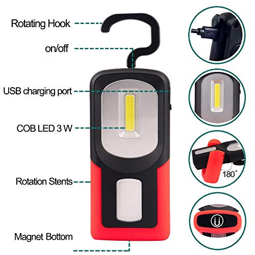 Ricaricabile: batteria al litio ricaricabile Bulti-in, la luce di lavoro LED COB lampade viene fornita con un cavo di ricarica USB, facile e comoda per essere ricaricata da una fonte di alimentazione USB come caricabatterie per telefono / PC / Laptop / banca di potere