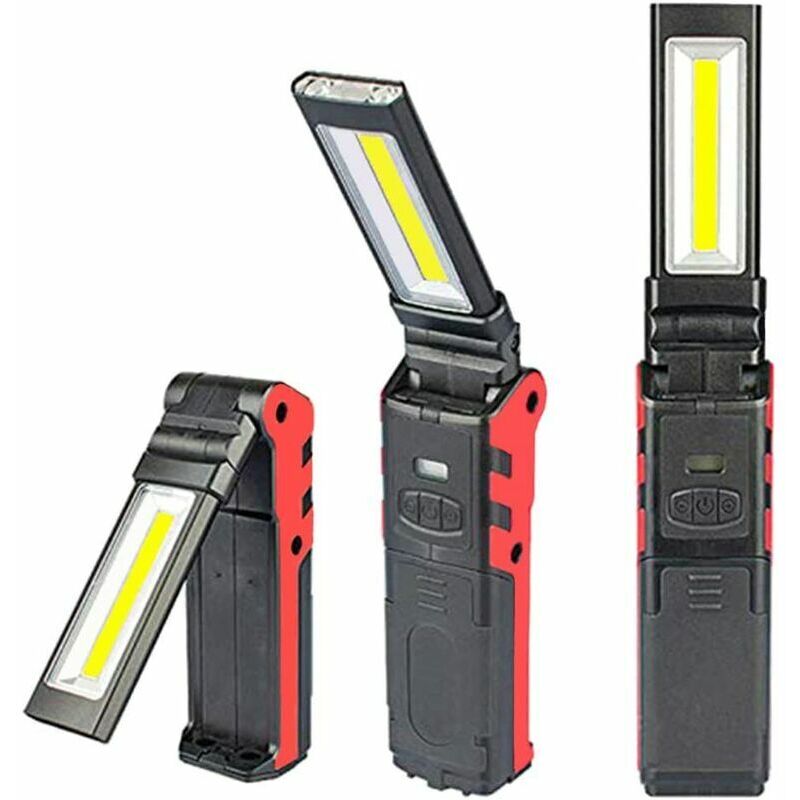 Materiale durevole - - La luce è realizzata in PC + TPR + alluminio che dissipa efficacemente il calore, prolungando la durata della lampada. [Design intelligente] Ruota di -270 con una base magnetica e un gancio che può illuminare più angolazioni. Design pieghevole per un facile trasporto e un risparmio di spazio ridotto.[Ricaricabile tramite USB] - 1 batteria ricaricabile agli ioni di litio 18650 integrata, ricaricabile tramite porta USB;