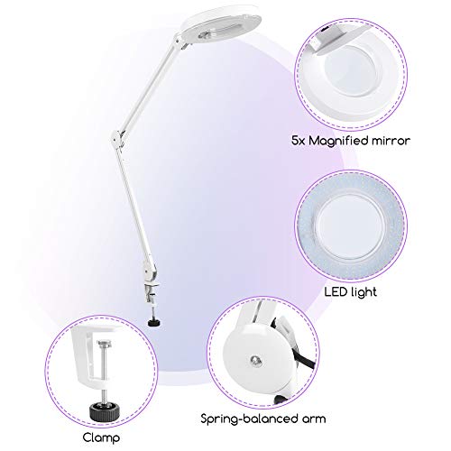 Lampada LED con lente d'ingrandimento, braccio orientabile e regolabile, ingrandimento di 5 volte