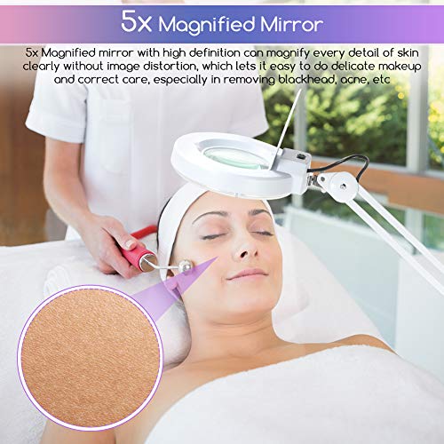 Applicazione: l'uso di una lampada con lente di ingrandimento è principalmente indicata per la capacità del terapista di valutare ed esaminare correttamente la pelle del cliente. Essa è usata anche da hobbisti, gioiellieri, ottici, estetiste, modellisti e molti altri. Completa di lampadina a giorno a luce alta e bassa temperatura. Permette di osservare e controllare la pelle nitidamente con una potente lente d'ingrandimento con luce LED.