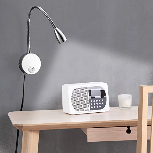 Lampada da lettura,luce a LED con luce diurna a parete a collo di cigno in alluminio per l'ufficio della camera da letto bianco caldo,200LM /3000K/3W,angolo di emissione della luce:30°,lunghezza:28cm