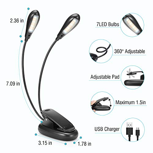 Lampada da lettura ricaricabile Lampada da lettura a LED per libri Clip da letto su lampada da lettura a doppia testa 14 LED 3 colori e 3 luminosità totale 9 modalità Lampada da lettura a LED