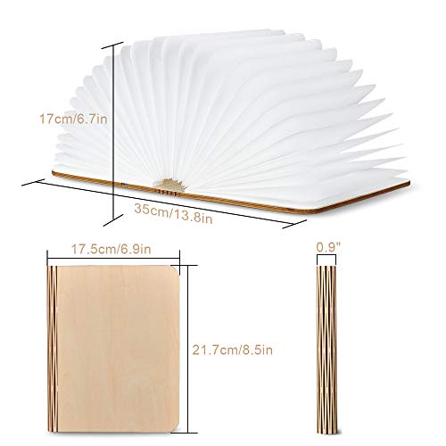 Lampada Libro GEEDIAR Lampada a Libro USB Ricaricabile Pieghevole in Legno Magnetico LED Luce in Forma di libro, 2500mAh Batteria litio Lampada da Tavolo, Bianco Caldo