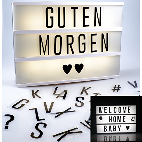 Lampada lightbox a LED con lettere e simboli, funzionamento a batteria, lampada decorativa formato A4, 85 lettere e caratteri flessibili