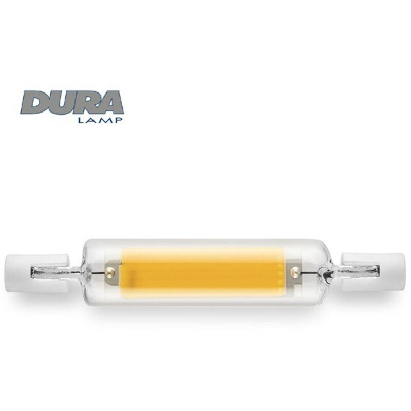 Lampada Lineare a LED con filamento a deposizione di fosfori. Dimensione come quella delle lampade ad alogeni ed emissione della luce a 320° per una sostituzione immediata delle lampade tradizionali. Diametro particolarmente ridotto, facile inserimento negli apparecchi con attacco R7s. Colore della luce caldo ed accogliente, grande risparmio energetico. Materiale in Vetro. L'assenza di emissione di raggi UV ed infrarossi, che causano lo scolorimento delle merci, rendono l'impiego di questa lampada preferibile a quello di un'alogena, soprattutto nelle applicazioni commerciali. Attacco R7s, potenza 4W, luce calda 2700K, fascio di luce 320°, non dimmerabile, lumen 540, alimentazione 220-230V, dimensioni 78X14mm.