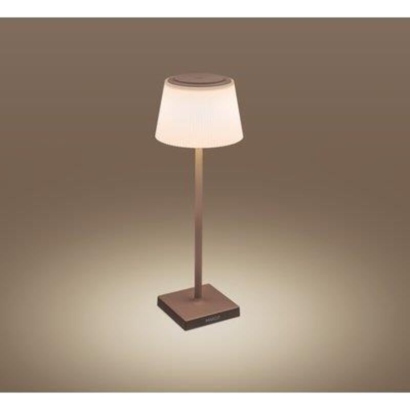 Lampada led margo century Corten volt 4,0 w 2,0 calda ln 200 ip54 lampada led da tavolo, ricaricabile tramite cavo usb type-c. corpo in alluminio. maneggevole e stabile grazie alla base antiscivolo. tasto di controllo touch per regolazione intensità luminosa. batteria integrata, illumina per 10h senza necessità di ricarica.