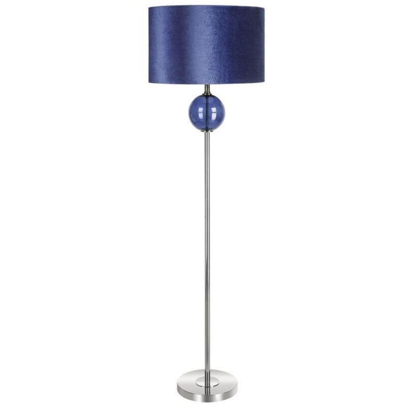 Lampada da terra decorativa, con paralume in velluto larghezza: 46 cm, lunghezza: 157 cm, colore: blu navy, Composizione: lampada: ferro, vetro;