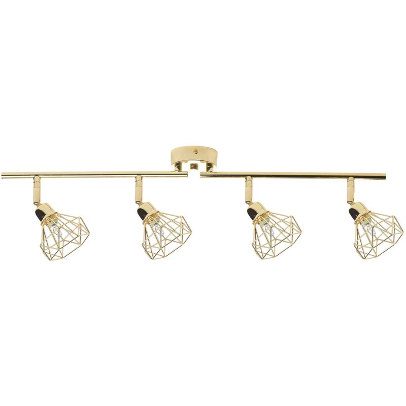 Lampada da soffitto con 4 luci. Aggiungi un tocco di eleganza alla casa con questa plafoniera. Realizzata in durevole metallo di altissima qualità, sorprende per i suoi colori moderni e l'originale forma dei paralumi orientabili a forma di gabbia. Chiaro esempio di stile glamour, è perfetta per la sala da pranzo, la camera da letto o la cucina. Dettagli: Tipo di prodotto: Plafoniera Colore principale: Oro Tipo di materiale: Metallo Materiale principale: Metallo Materiale del paralume: Metallo Parti regolabili: paralume Potenza elettrica: 20W Finitura: Brillante Codice IP di protezione: IP 20 Lampadine richieste: 4 Voltaggio: 220-240 V (50 Hz) Dimensioni: Profondità: 10 cm Larghezza: 66 cm Altezza: 14 cm Peso: 1 kg L'offerta include: 1 x Lampadario, Non include: Lampadine Caratteristiche chiave: Paralume regolabile, Braccio regolabile, Adatto a ogni stile di decorazione d'interni, Design moderno, Risparmio energetico ottimizzato, Facile da pulire, Struttura stabile Guida al montaggio