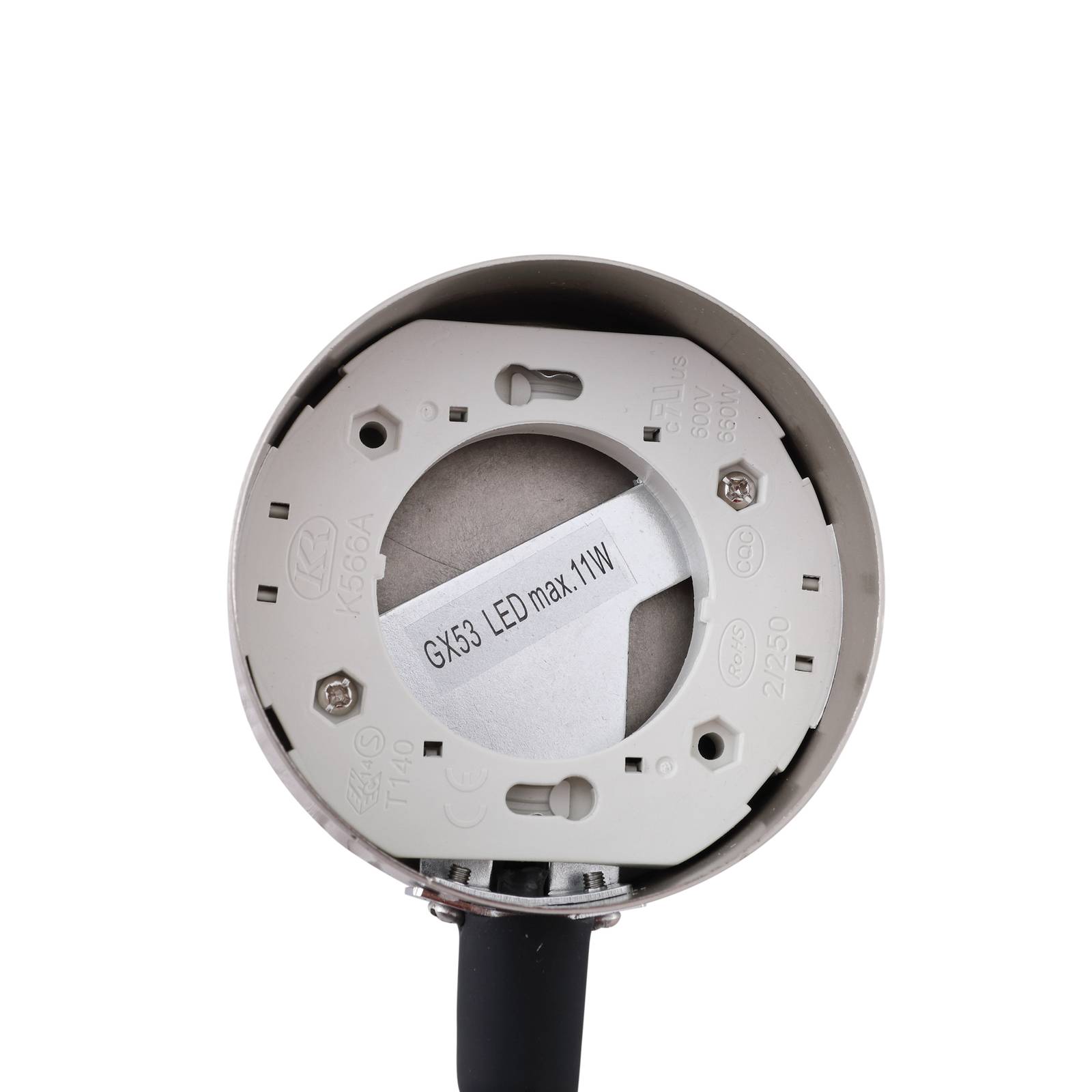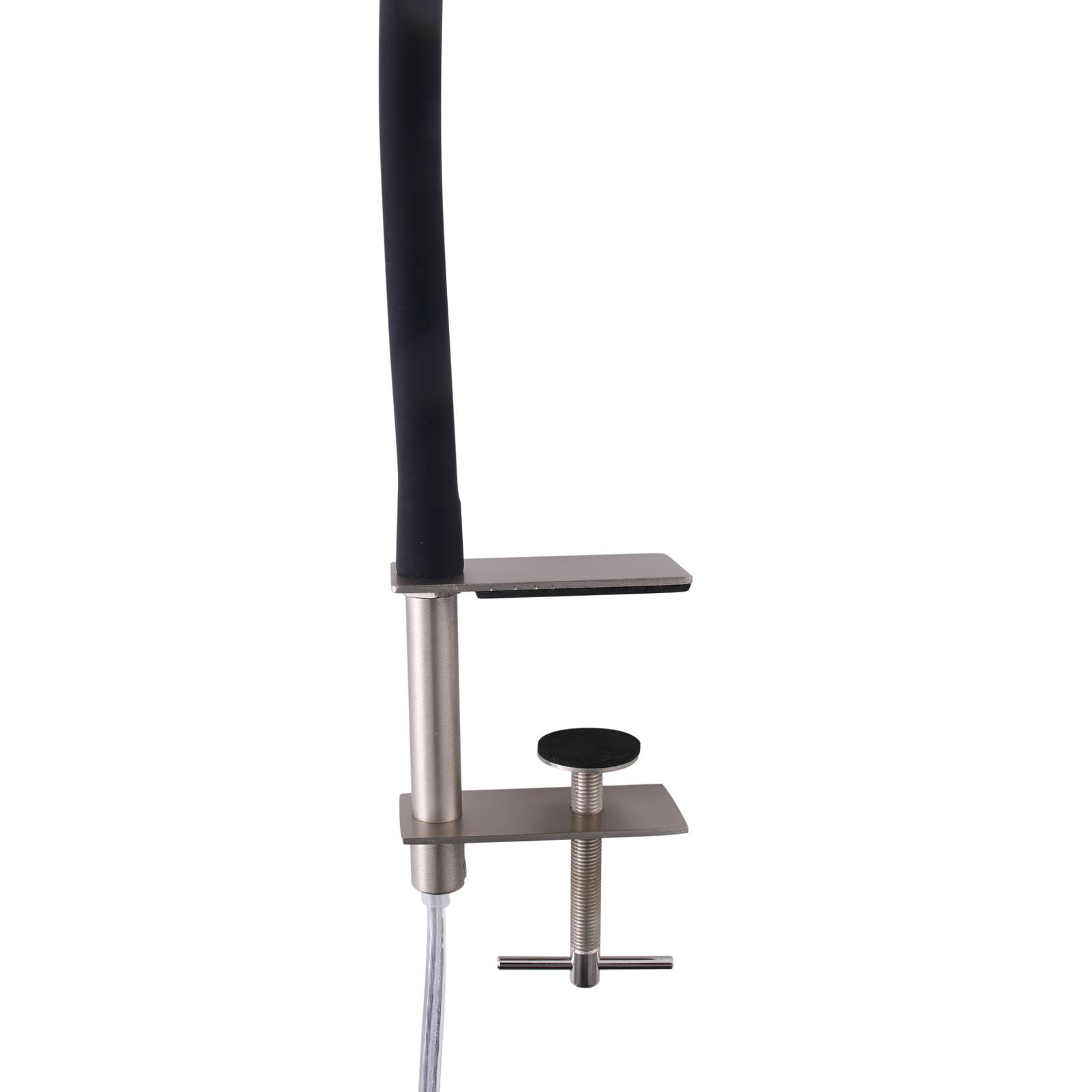 Versatile lampada con morsetto Jyla con braccio flessibile Grazie al suo morsetto a vite, la lampada con morsetto Jyla può essere posizionata in diversi modi, tutto ciò che serve è una presa vicina. La luce può essere montata, ad esempio, su tavoli, scaffali o davanzali. La vite rotante consente di regolare il morsetto in base allo spessore della superficie. Jyla è inoltre dotata di un braccio flessibile che consente di adattare la direzione della luce alle esigenze individuali. La luce bianca neutra universale garantisce un'illuminazione ideale della stanza. Grazie all'elegante combinazione di colori nichel e nero, la lampada con morsetto si inserisce senza problemi in diversi ambienti, mentre l'interruttore integrato consente di accendere e spegnere la luce come di consueto. Grazie alla tecnologia di dimmerazione a 3 fasi con funzione di spegnimento integrata, è possibile dimmerare la luce a tre diversi livelli di luminosità premendo più volte l'interruttore: 100 %, 50 % e 25 %. La sorgente luminosa GX53 in dotazione è dotata di una lente curva e ha quindi l'aspetto di una semisfera di vetro.