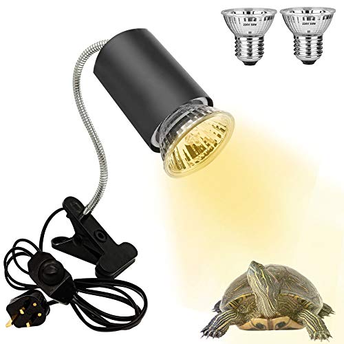 Lampada a morsetto per rettili a forma di tartaruga, con supporto, lampada UVA, UVB, con collo di cigno girevole di 30 cm e 2 lampadine di calore da 50 W per lucertola, tartaruga serpente acquario