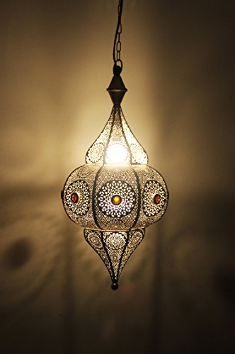 Lampada orientale marocchina - lampada a sospensione - Lampada da soffitto Elif Argento - 50cm- molto pratica per un ottima illuminazione - trasmettere un eccellente - raffinata decorazione