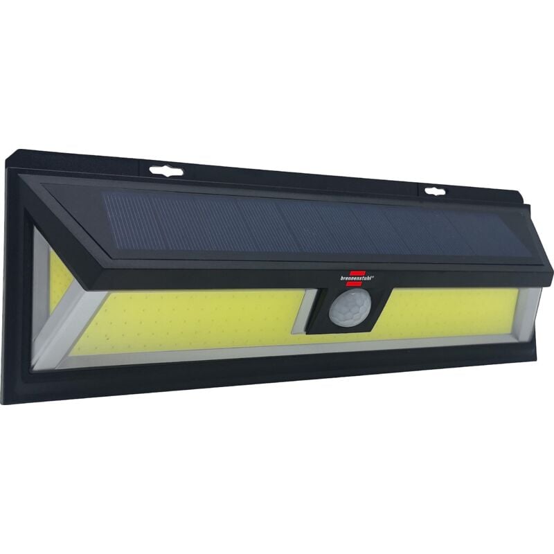 Lampada con pannello solare Brennenstuhl 1171830016-rilevatore di movimento-nero -Luminosa lampada da parete COB LED con pannello solare integrato e un tempo di accensione automatica di circa 30 secondi con 2 livelli di luce regolabili al 50% e al 100%-Nessun cavo necessario, essendo tutto racchiuso in un alloggiamento semplice ed elegante-Sensore di movimento PIR con angolo di rilevamento orizzontale di 120° e portata massima di 10m-Lampada solare con modulo solare integrato, la durata dell'illuminazione è di circa 10 ore con una batteria completamente carica -Include 1 batteria NiMH ricaricabile e sostituibile-La confezione include: 1x lampada LED SOL WL 700 per montaggio a parete all'aperto (IP65) con modulo solare integrato e rilevatore di movimento PIR, Specifiche Capacità: 2 AhTecnologia della batteria: Ioni di litioTensione: 3,70 VDurata della luce: 10 hRicaricabile: siBatteria inclusa: siColore: neroMateriale alloggiamento: Plastica Angolo di rilevamento orizzontale: 120